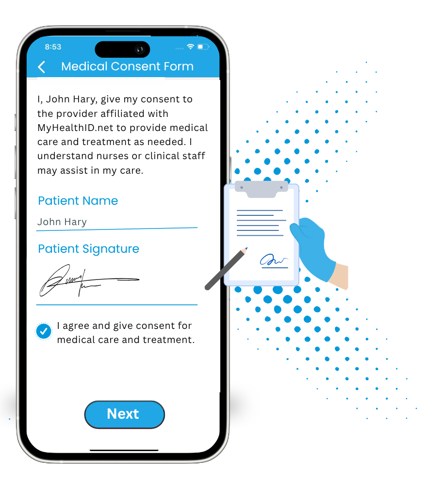 Patients can fill out all the necessary provider consent forms using only the app and submit them electronically to the provider. Getting consent from the patients becomes a breeze.